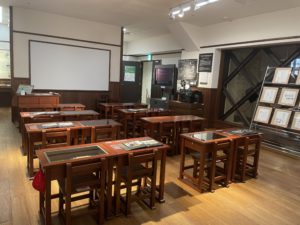 注意点として、法務省では門の前に立っている警備員さんに声をかけて入館パスをもらう必要があります。建物内に入ると今度は違う警備員さんが展示室まで案内してくれました。結構警備がガチガチです。