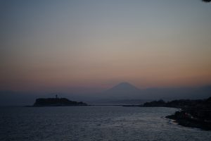 江ノ電稲村ケ崎駅から歩いて10分程の場所にある海浜公園です。晴れた日に行くと、江ノ島や富士山にかかる夕日がきれいですので、上の神社などが閉まった後に行くのをお勧めします。高台の上では、きれいなあじさいと夕日が見れる点がオススメです。