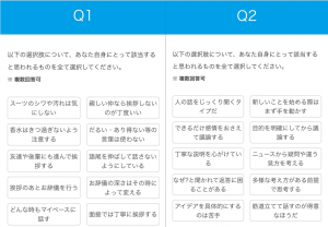 質問の内容は、個人の性格やスキル、習慣や将来の働き方など多岐にわたりました。よくある性格診断とは違い、面接官が見そうな項目が網羅されていました。