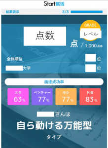 ① 就活診断を受けられる(就活で点数や順位がでるのは新鮮!)