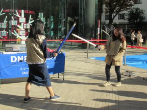(写真:オリパラウィーク2019、フェンシング体験ブースの様子)