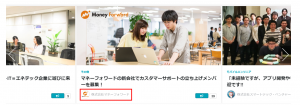 上の写真で赤く示している企業名を押すと、企業の概要や社員のプロフィール、また企業が投稿している記事を読むことができます。