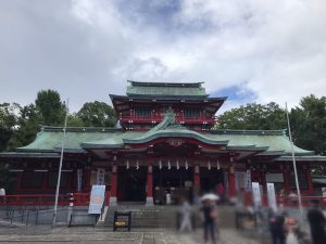 神楽坂駅1b出口からすぐの赤城神社へ。殖産興業、厄難消除、学問藝術の神、また火防の神として有名です。