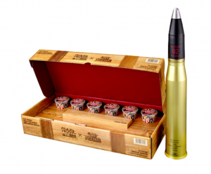 実際にアニメに登場する砲弾を、実寸大で忠実に再現して、カップヌードルを保管できる「砲弾型ストッカー」にしました。ほかに、人気キャラクターとカップヌードルが共演したと描き下ろしのオリジナルポスターなどをつけた29,800円の商品だったのですが、限定2500セットが1日半で売り切れました。
