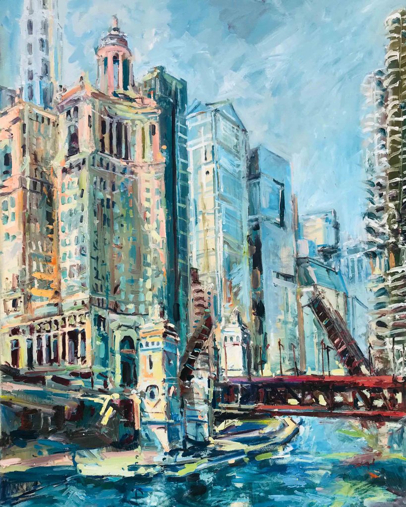 This is an architecture plain-air oil painting which I made on the Chicago River, one of the famous river walks in the city, surrounded beautiful modern and classic architecture.